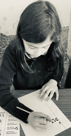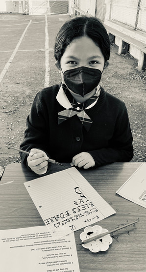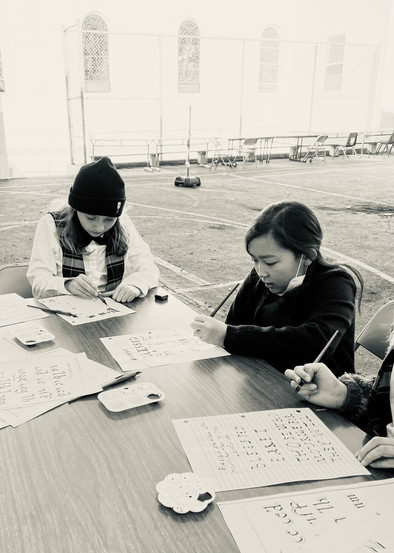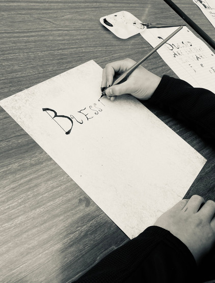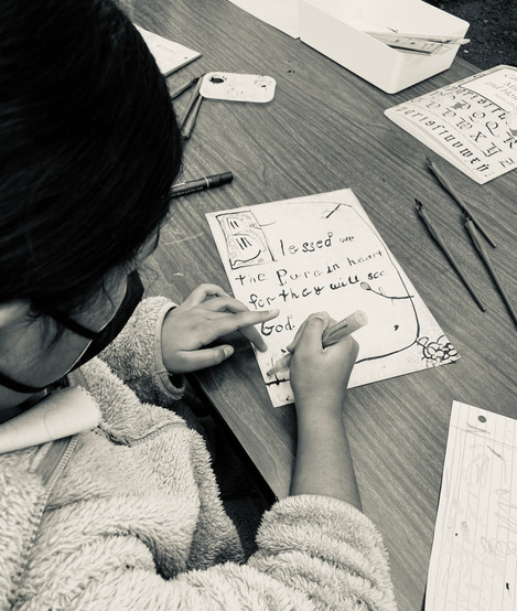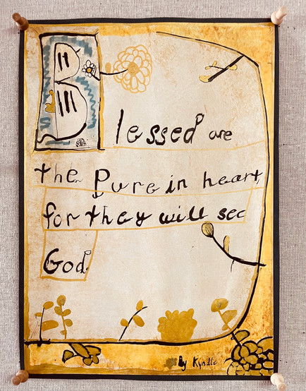 The fourth graders set out to try their hand at lettering. They practiced writing with calligraphy pens and ink, making careful letter strokes and embellishing their pages with gold. Because much of the copying and writing that took place in the monasteries was the scriptures, we practiced writing the Beatitudes of Jesus. St. Benedict came up with three rules for holy and monastic living, but Jesus came to set us free from the law and gave us eight blessings to truly teach us how to live at peace.